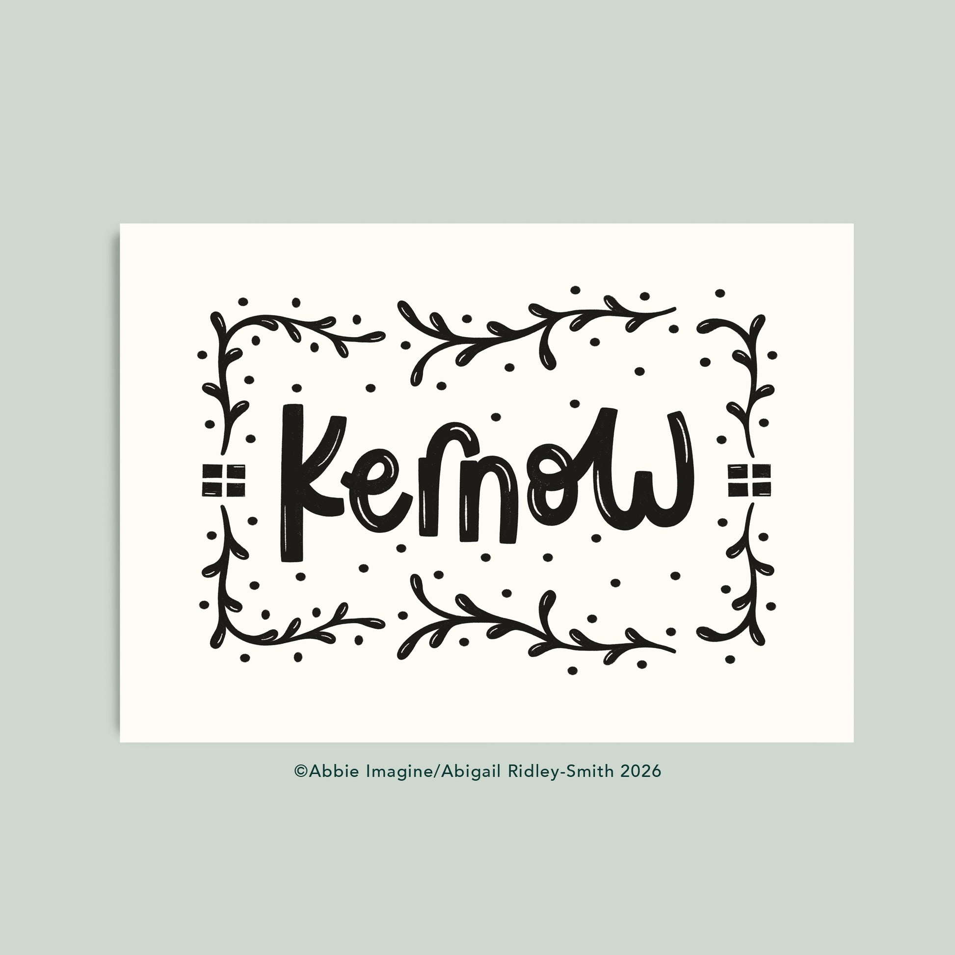 Celebrate all that is Cornwall with this monochromatic typography print. The black and white hand lettering simply states 'Kernow', while the leafy illustrations and the Cornish flag ensures it looks wonderful in any room in the house. A perfect gift for lovers of Cornwall!